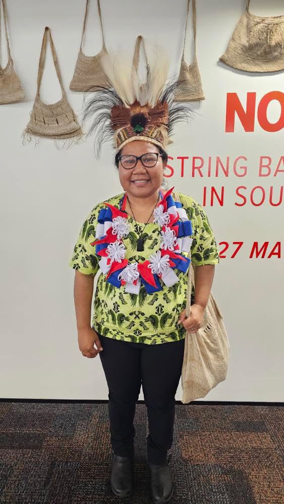 This salusalu was made for West Papuan researcher, Veronika Triariyani Kanem upon completing her PhD at the University of Auckland – Waipapa Taumata Rau, on Noken / Men: String Bags of the Muyu Tribe of Southern West Papua. It was gifted to her at the opening of her exhibition produced with support from Lagi-Maama Academy & Consultancy, read more here.